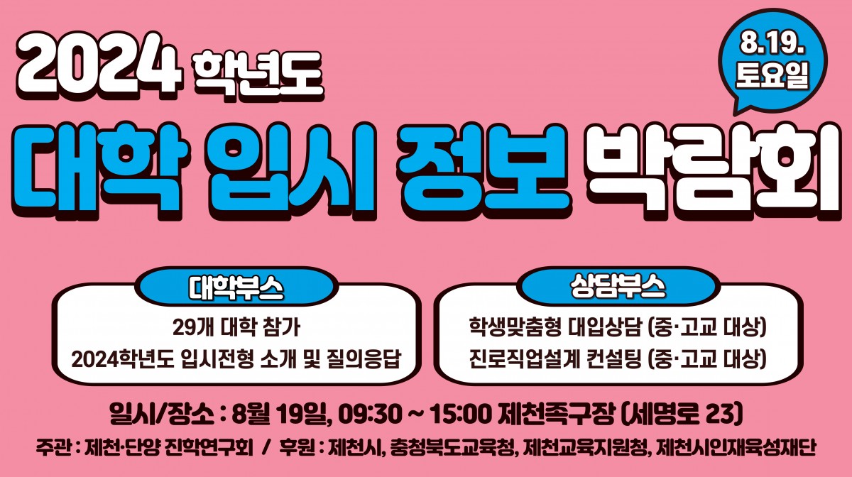 "2024학년도 대학 입시 정보 박람회"가 진행될 예정입니다.