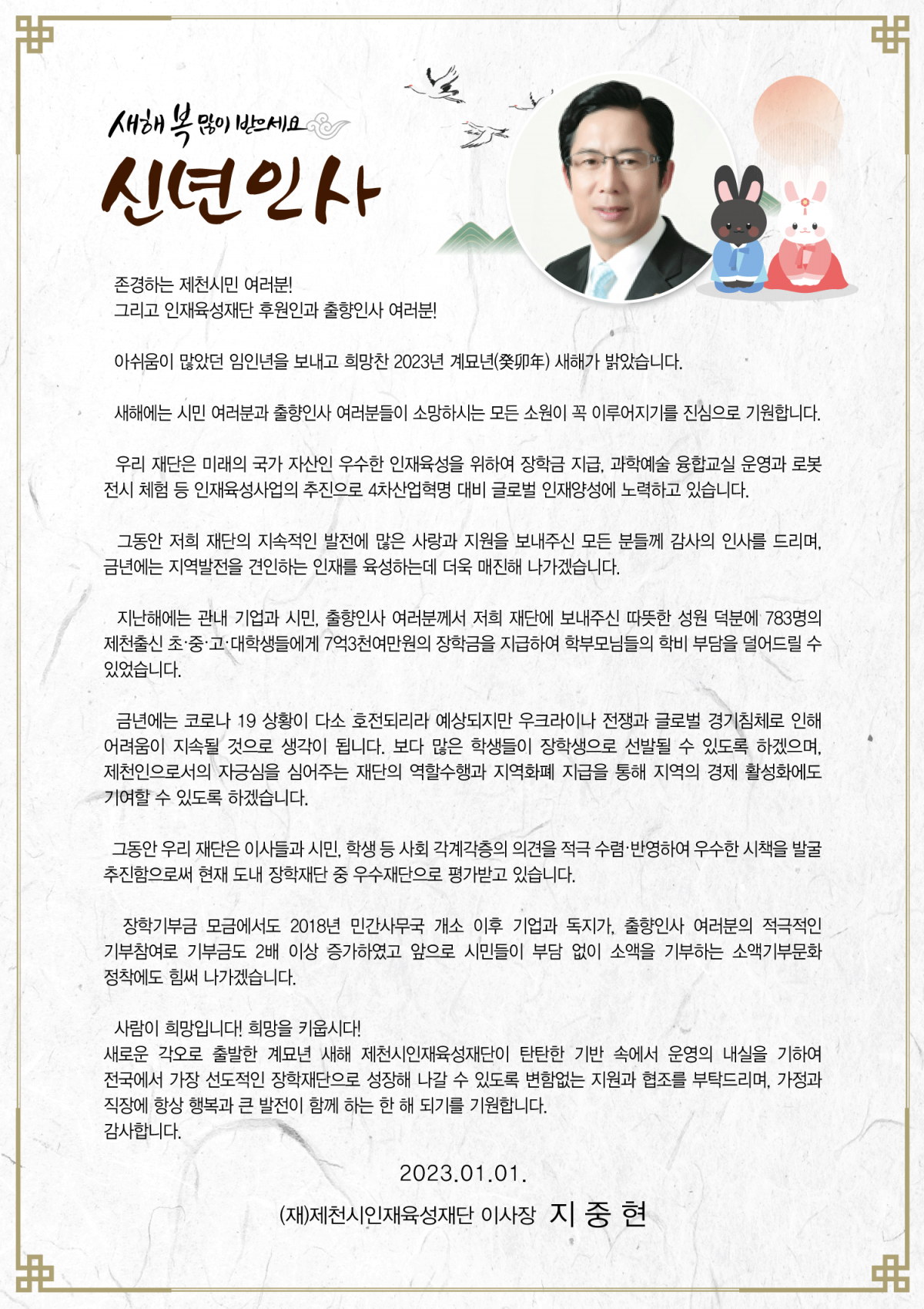[2023 신년사] 제천시인재육성재단 이사장 지중현