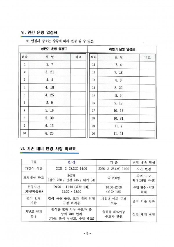 ○ 운영기간 : 2026. 3. 7. ~ 11. 21. (총 20주)