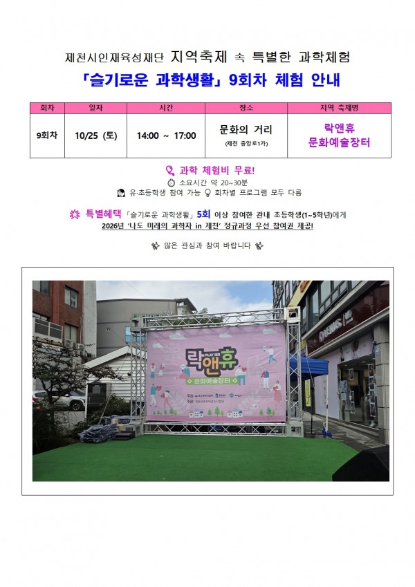 제천시인재육성재단 지역축제 속 특별한 과학체험(8회차, 9회차) 안내