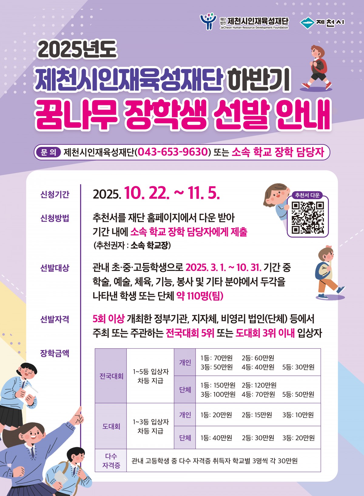 2025년도 제천시인재육성재단 하반기 꿈나무 장학생 선발 안내