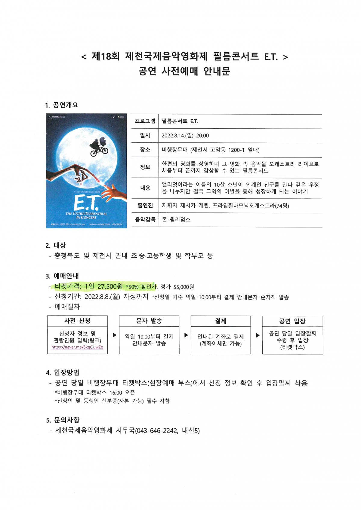 <제18회 제천국제음악영화제 필름콘서트 E.T.> 공연 사전예매 안내