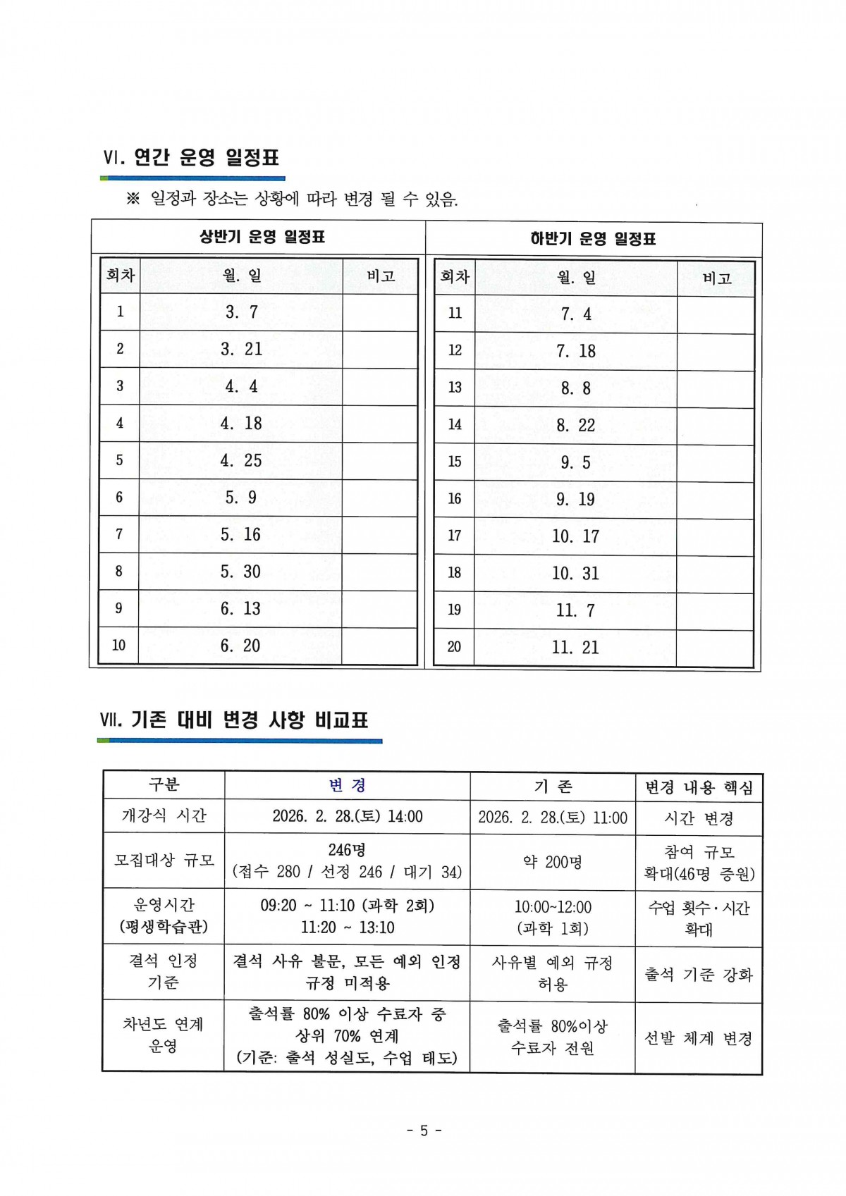 ○ 운영기간 : 2026. 3. 7. ~ 11. 21. (총 20주)